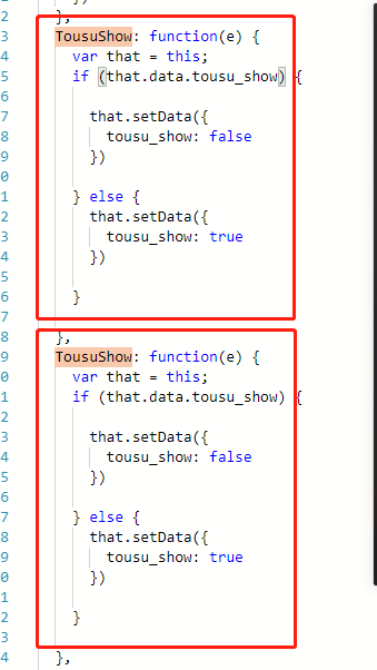 为什么微信小程序页面上多个相同事件bindtap='TousuShow',只出现一个起作用